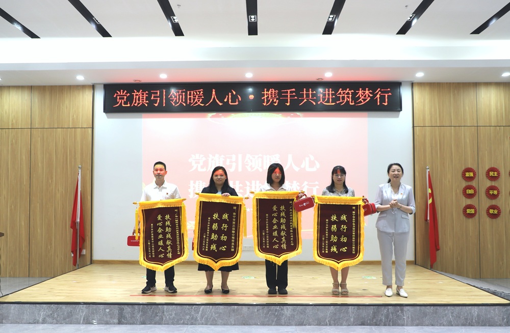 活動現(xiàn)場,八桂種苗集團黨支部與各愛心企業(yè)黨支部代表共同將慰問品送到殘疾人代表手中,表達了對殘疾人群體的深切關懷與支持。隨后,現(xiàn)場舉行了錦旗頒發(fā)儀式,吳兵副總經(jīng)理代表集團領取“扶殘助殘愛心企業(yè)”錦旗,這不僅是對集團積極履行社會責任、熱心公益事業(yè)的肯定,更是對黨建引領下社會各界攜手助殘良好風尚的弘揚。